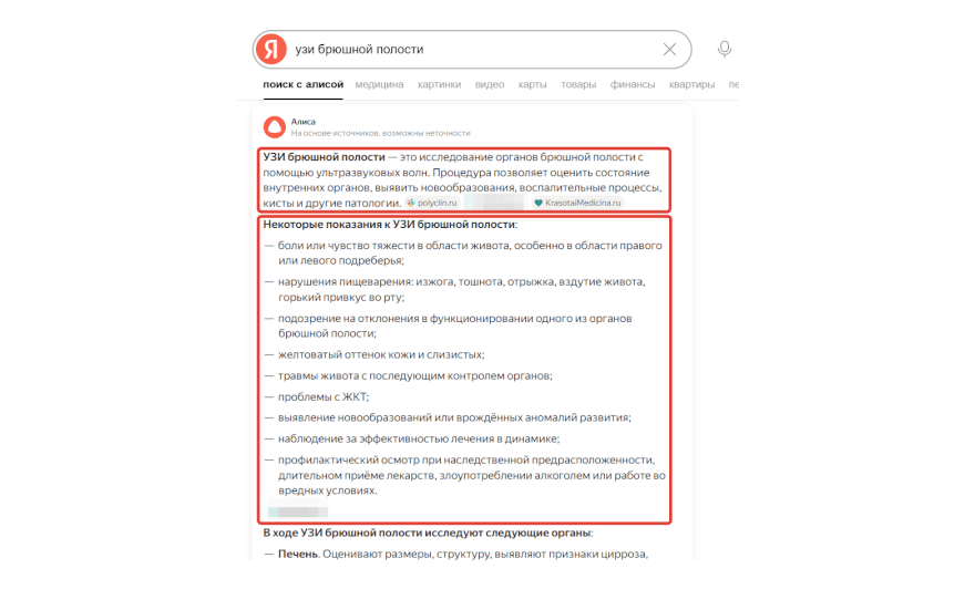 Пример нейровыдачи по запросу “УЗИ почек” в Google
