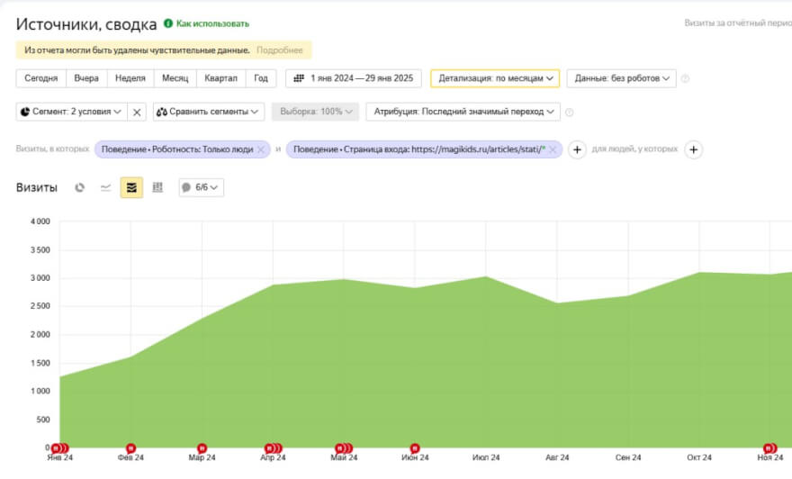 Динамика трафика из поисковых систем в блог с 01.01.2024 по 30.01.2025