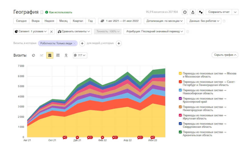 Увеличение количества переходов c 3000 до 17000 в месяц, увеличение объема трафика из регионов России в 6 раз