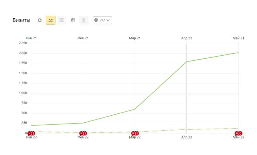 И в конце 4 месяца продвижения мы увидели ощутимое различие в объеме трафика по сравнению с прошлым годом.