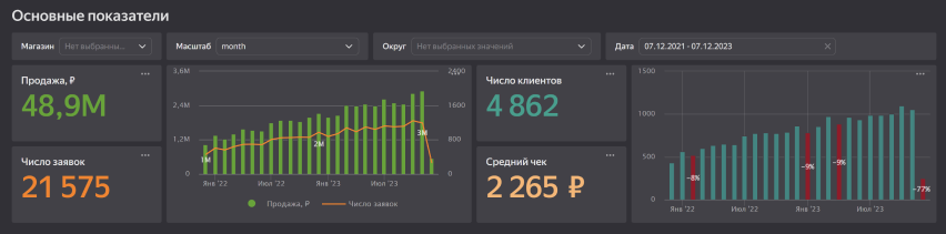Для мониторинга и управления процессами — собирайте информацию о бизнес-процессах компании: выводите данные о количестве продаж, прибыли, сотрудниках, собирайте отчетность по отделам. Все это поможет сделать выводы, оптимизировать процессы, найти слабые места и точки роста.